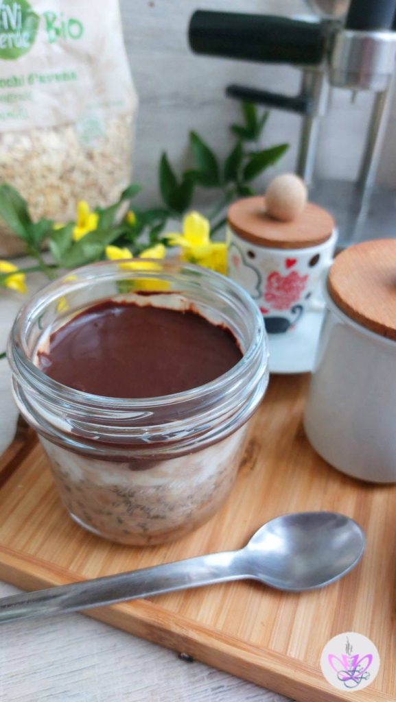 Já é bem sabido que o café da manhã é uma das refeições mais importantes do dia, pois é dele que tiramos a energia para enfrentar o dia! Depois de experimentar o overnight oatmeal de morango e beterraba, hoje quero te propor uma versão incrivelmente mais estimulante com sabor de tiramisù! Então, se você é amante de café, não pode absolutamente perder! Aqui, de fato, os flocos de aveia (oatmeal), diferentemente da tradicional preparação anglo-saxônica, são dissolvidos não apenas no leite vegetal, mas também no café espresso! A esta base também se adicionam as sementes de chia, mas considerando que muitas vezes não são facilmente encontradas em nossos supermercados, pode-se omiti-las e aumentar as doses dos flocos de aveia para ter um bom pudim cremoso. Em qualquer caso, deve-se deixar este preparado descansar por toda a noite (overnight) para depois ser servido. Será prático e conveniente se você estiver sempre com pressa de manhã, porque não terá que fazer nada além de tirá-lo da geladeira e saboreá-lo! Sem açúcares adicionados, na receita não adocei nada, mas estou acostumada a beber café amargo, então, com base nos seus hábitos, adicione uma colher de chá de açúcar no café espresso antes de esfriá-lo completamente! Sua autenticidade e seu forte poder saciante, tornarão esta sobremesa de café da manhã muito equilibrada e satisfatória! Além disso, será realmente irresistível assim que você afundar a colher, graças ao topping de cacau e leite vegetal, que será preparado em apenas um minuto! Experimente no café da manhã ou como um lanche matinal para levar talvez com você para o escritório, será perfeito para garantir um forte senso de saciedade e uma explosão de energia para os seus dias!