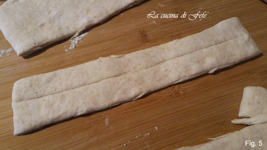 Em seguida, cada parte dividida em duas. Estenda com o rolo: devem ter uma largura de 4 cm e um comprimento de aproximadamente 25 (fig. 5).