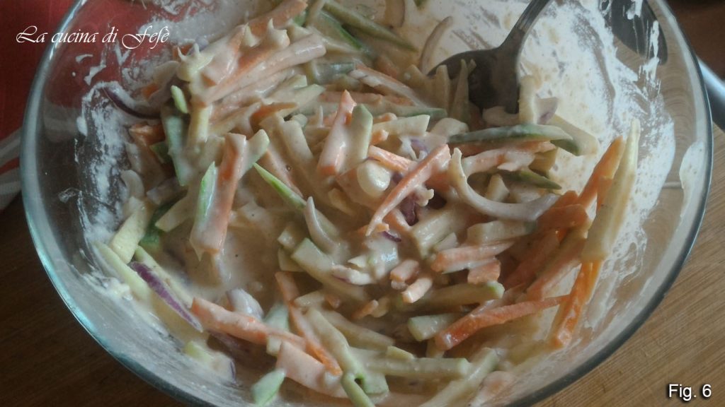 Adicione os legumes cortados e misture bem para integrar todos os ingredientes (fig. 6).
