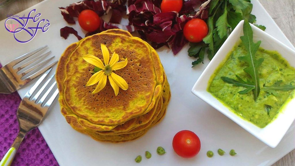 Essa receita preparada ontem à noite para o jantar foi uma verdadeira revelação até para mim que me convenci a realizar uma refeição leve, mas nutritiva do ponto de vista proteico. Mas principalmente o objetivo era cozinhar um prato de baixo impacto, ou seja, com ingredientes simples e máximo rendimento! Neste período difícil, agora mais do que nunca que fazer compras tornou-se um ato de coragem, com filas quilométricas por horas antes de conseguir pegar as sobras dos outros e realmente colocar no carrinho todos os ingredientes previstos na nossa lista, trazer à mesa algo saboroso com pouco parece uma utopia! Em vez disso, eu chamaria de realidade, porque o segredo está justamente no que todos temos na despensa: legumes, ovos, verduras da estação e um toque de criatividade. Inspirando-me nos meus panquecas veganas, pensei em enriquecer ainda mais a receita, adicionando à base de grão-de-bico já cozido, sobra de um almoço anterior, e um ovo para um aporte proteico equilibrado. Sirva-os ainda quentes, acompanhados de um fresco pesto de rúcula e abacate para mergulhar, ou passar se preferir, e uma salada mista fresca. Foi um jantar incrível, de baixo custo e muito rápido de preparar. Bastam 5 minutos para montar os ingredientes, misturá-los em um processador de alimentos e cozinhar tudo por dois minutos de cada lado, ou até menos. Um último conselho, usei farinha de ervilha para a massa, mas obviamente a farinha comum 00 também funcionará, assim como o pesto de rúcula e abacate pode ser substituído por um simples molho de iogurte. Em suma, é um convite para aproveitar o que você tem à disposição e fazer sua essa minha simples ideia. Verá que resultado!
