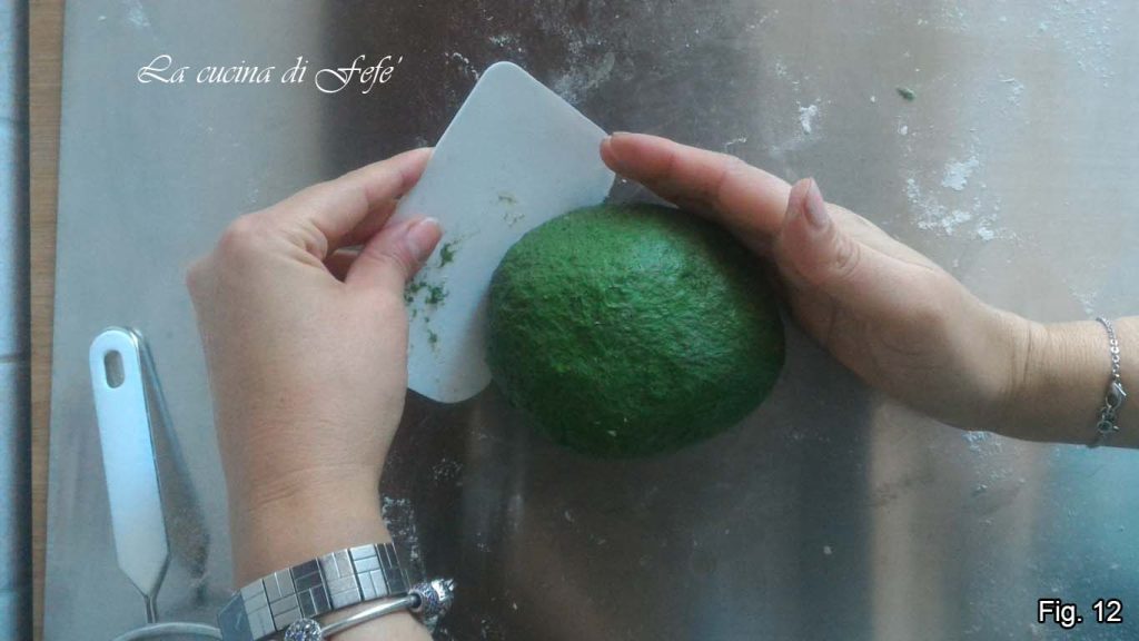 Forme um pãozinho homogêneo, ajudando-se com uma espátula (fig. 12).