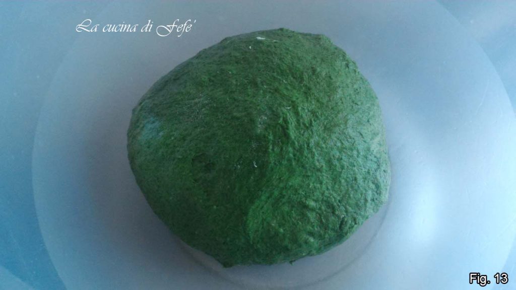 • Coloque a massa assim obtida em uma tigela bem untada e deixe descansar por 1 hora em temperatura ambiente e depois na geladeira na prateleira mais baixa durante toda a noite (fig.13).