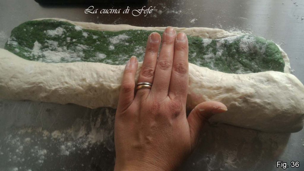 • Faça o mesmo com a massa de espinafre, que você deverá estender e sobrepor à de iogurte grego (fig. 34 e 35).