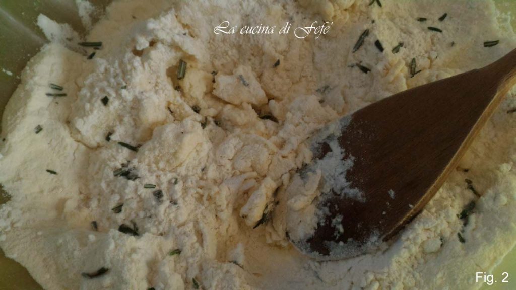 • Adicione o alecrim desfolhado, o sal e a pimenta e misture com uma colher de pau (fig. 2).