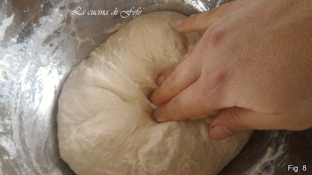 Você notará que, aos poucos, a massa assumirá uma aparência mais lisa e homogênea. Neste ponto, cubra com uma tampa ou filme plástico e deixe descansar em t.a. por 1 h.