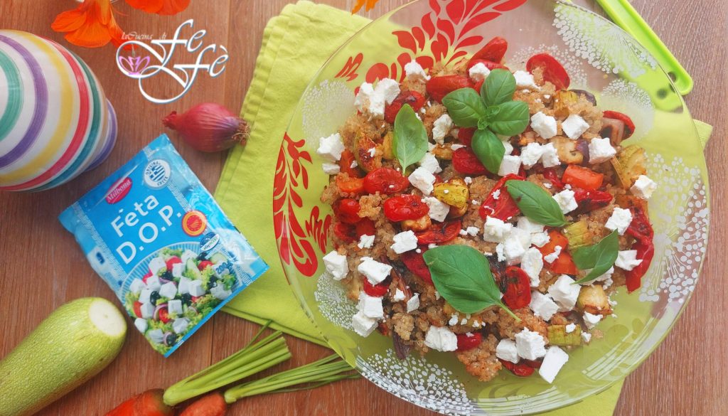 Se pensam em um prato vegetariano, leve e sem glúten, o que lhes vem à mente? Para mim, é esse primeiro prato à base de quinoa e legumes assados, que experimentei ontem, já que tinha alguns vegetais na geladeira que precisavam ser consumidos o quanto antes! Vou lhes dizer, saiu uma refeição tão saudável, equilibrada e rica em aromas e sabores, que não poderia deixar de compartilhar com vocês! Como sabem, na cozinha, sempre procuro os compromissos certos, mas principalmente variar o máximo possível. A quinoa, por sua vez, é certamente um dos “superalimentos” que mais tento introduzir na minha dieta alimentar, pois é rica em proteínas de alto valor biológico e diversos aminoácidos essenciais. Por causa de sua aparência e alto teor de amido, é erroneamente considerada um cereal, mas na verdade está mais próxima da família dos espinafres e beterrabas do que das gramíneas. Em qualquer caso, comporta-se como se fosse um cereal, uma vez que se presta a substituir arroz e massa em termos de fornecimento de carboidratos e a ser acompanhada por legumes e leguminosas. E veja como, com extrema facilidade, você pode preparar a quinoa como base neutra para seus pratos e adicionar os vegetais da estação ou os que preferir! Além disso, como mencionei, é também isenta de glúten, sendo perfeita para quem sofre de celíase! Você nem precisará se preocupar em ficar atrás do fogão; basta cortar tudo em pedacinhos e direto para o forno! Um bom fio de azeite e um pouco de queijo feta grego darão aquele toque de sabor que conquistará todos, tanto os amantes da culinária alternativa quanto os mais tradicionalistas!