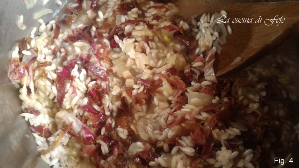 • Quando faltar cerca de 5′ para o término do cozimento, adicione o radicchio reservado.