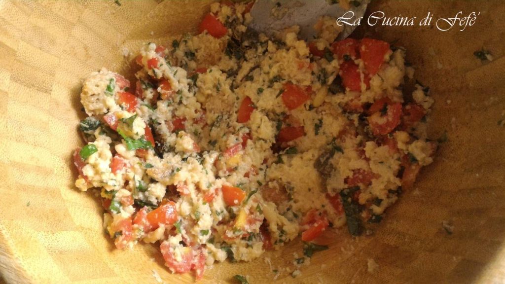 Uma vez macio, esprema-o com as mãos e junte à brunoise de tomatinhos.