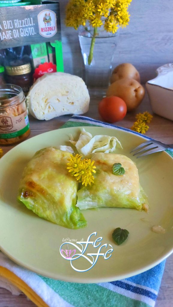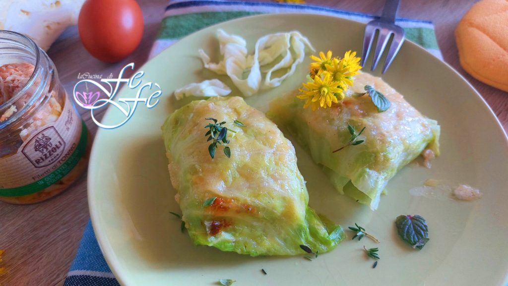 Hoje quero absolutamente convidar vocês a preparar este delicioso prato de rolinhos à base de repolho, com um recheio surpreendente que vai fazer você literalmente lamber os beiços! Trata-se de um prato principal da estação de inverno, muito rico em sabores! Cofres macios cujo interior encontramos batatas, queijo, filés de atum e repolho levemente refogado na frigideira. São perfeitos para quem deseja consumir uma refeição nutritiva e saborosa sem, no entanto, exagerar nas calorias. Enfim, uma alternativa válida e original aos habituais rolinhos à base de arroz ou carne, fáceis de realizar e realmente versáteis, pois, de acordo com o seu gosto, podem ser personalizados ao prazer, criando a cada vez versões sempre diferentes! Basta escaldar as folhas maiores e externas do repolho, mas para esta preparação também servirão aquelas do repolho-verde, recheá-las com esta combinação de ingredientes e colocar tudo no forno. Uma preparação muito cênica e apetitosa, que você poderá levar com sucesso à mesa para surpreender os seus convidados com originalidade!