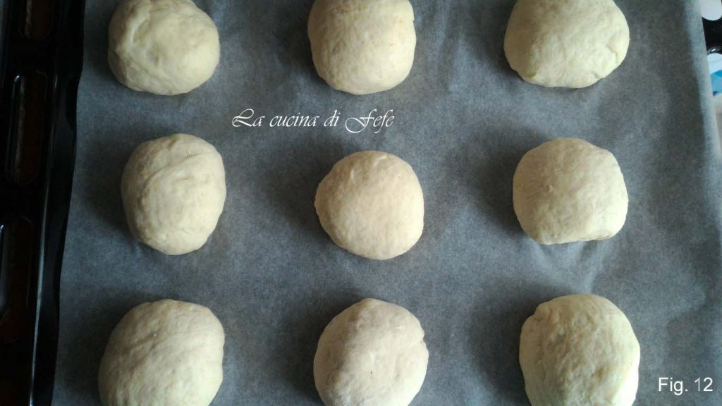 Modele bolinhas, disponha-as numa assadeira forrada com papel manteiga e cubra com um pano para uma última fermentação de 30 min.