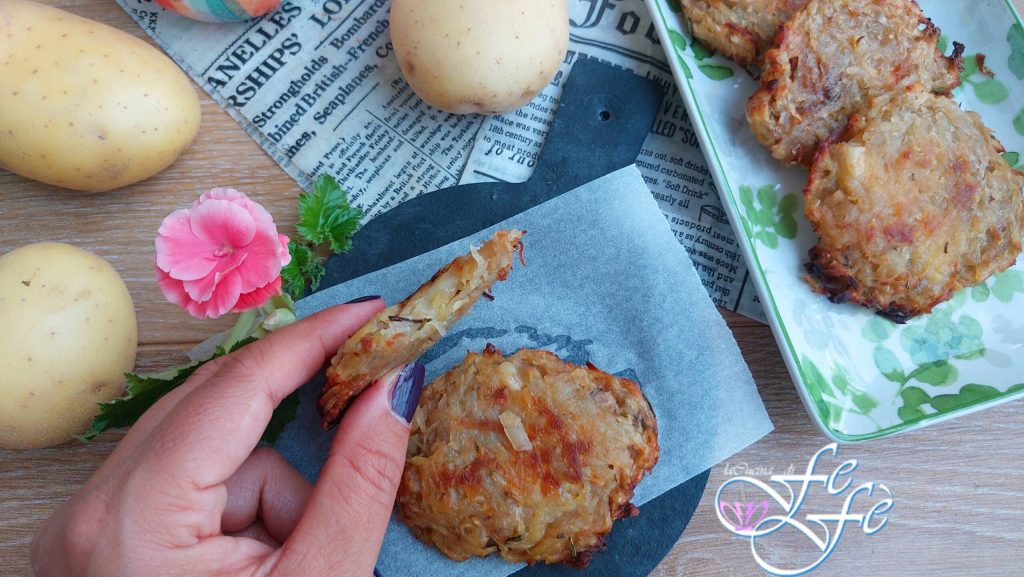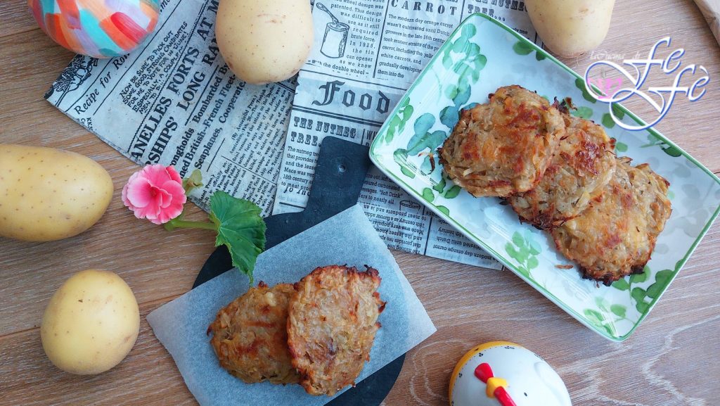 Os rösti de batata são uma receita típica suíça que se faz com três ingredientes básicos: batatas, geralmente raladas cruas, fécula de batata ou amido de milho, e sal. Além desses ingredientes, os rösti podem ser enriquecidos com ervas aromáticas ou especiarias a gosto. Em poucos e simples passos, você obterá fritinhos realmente deliciosos, que são cozidos na frigideira até obter uma crosta dourada e crocante. Eu os ofereço na versão assada e recheados com queijo, que os tornarão ainda mais convidativos e saborosos! Serão perfeitos para servir como aperitivo no estilo finger food, dentro de um buffet informal entre amigos, talvez acompanhados de algum molho saboroso para mergulhá-los ou como prato principal junto com uma salada fresca da estação.