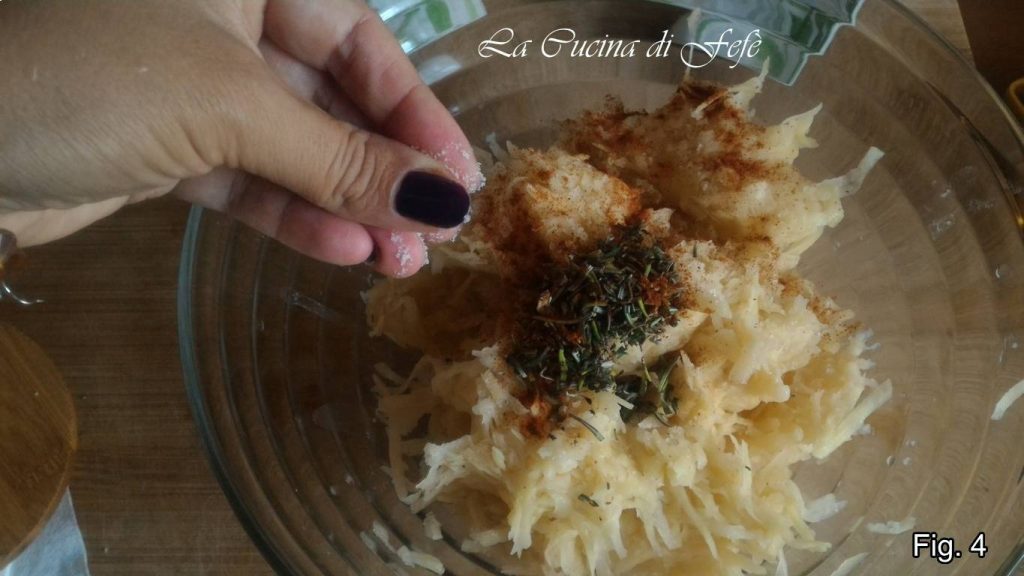 • Adicione então uma pitada de sal, o alecrim e a páprica (fig. 4). Por fim, a fécula peneirada e misture com uma espátula (fig. 5).