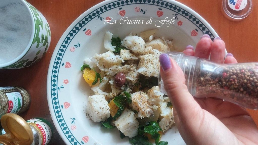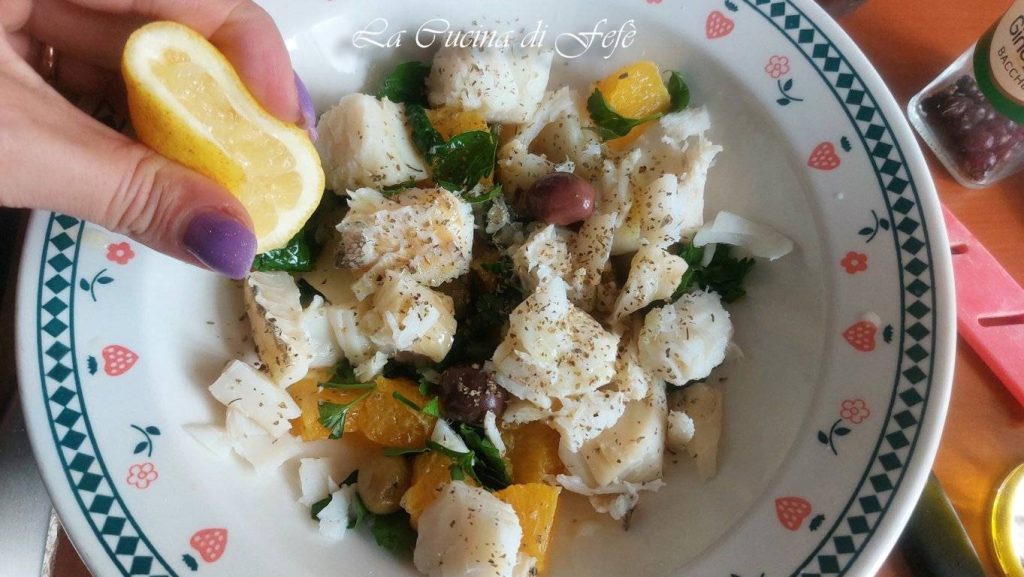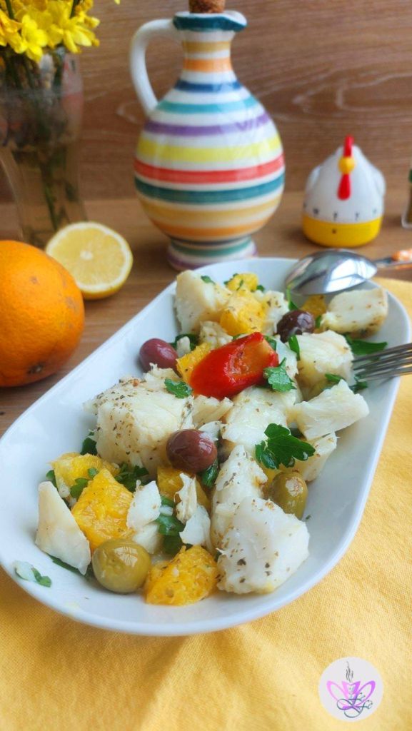 Por vários anos, admito que pouco apreciei o bacalhau por alguma lembrança errada de quando eu era pequena! Aliás, assim como para muitos, eu tinha a tendência errada de associá-lo ao bacalhau seco, também chamado de peixe seco ou simplesmente estocafi, ou seja, o bacalhau do Atlântico conservado por secagem natural sem uso de sal. Na realidade, a diferença substancial entre eles não é tanto a matéria-prima, que é sempre a mesma, ou seja, o bacalhau, mas o método de conservação já que o bacalhau é conservado em sal! Feita essa devida introdução, minha mãe o cozinhava frequentemente porque aparentemente meu pai gostava muito, enquanto eu detestava o cheiro forte e selvagem. Eu tinha dificuldade para comê-lo sem conseguir minimamente apreciar o sabor! Depois, com o tempo, redescobri o bacalhau durante a degustação do buffet para o meu casamento e desde então compreendi que as maneiras como pode ser cozinhado são inúmeras e fazem a diferença! Hoje quero apresentá-lo aqui simplesmente em forma de salada para depois mostrar como pode ser versátil com outras receitas ainda mais saborosas e surpreendentes! Trata-se de um prato básico de frutos do mar fresco, leve e delicado que pode ser servido durante o ano todo, no almoço ou jantar, tanto como segundo prato quanto como entrada das Vésperas ou outras ocasiões! Preparado assim, conquistará todos os seus convidados!