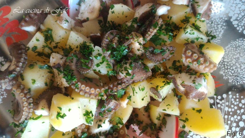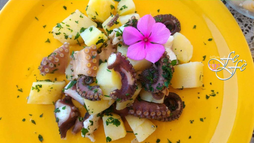 Confesso que estava muito hesitante em propor no blog esta receita! Afinal, quem nunca cozinhou na vida uma simples salada de polvo com batatas? No entanto, recentemente, descobri que isso não é exatamente verdade! As dúvidas e perguntas ainda são muitas e atuais, pois cozinhar este prato tão simples apresenta, no entanto, algumas armadilhas! E então tentarei desmistificar alguns mitos a respeito! A principal dúvida está ligada principalmente ao estado do polvo. Muitos se perguntam se é melhor comprar o molusco fresco ou congelado! O polvo é a exceção que confirma a regra. Na verdade, as temperaturas frias são o modo mais ótimo de amaciar suas carnes. Por isso, meu conselho, que é também primeiramente o daqueles que o pescam, é congelar o polvo fresco no freezer por pelo menos dois dias, para depois descongelá-lo e cozinhá-lo. Só assim, após o cozimento, o polvo não ficará borrachudo, mas sim macio e digerível, obtendo assim o máximo rendimento! Obviamente, uma vez descongelado, o polvo deve ser consumido dentro de 24 horas. Uma vez congelado, saiba também que mergulhar o polvo três vezes na água fervente para enrolar seus tentáculos será absolutamente inútil! Outra coisa a saber é que fervendo-o em muita água se dispersa o sabor. Portanto, de acordo com o peso, saiba se ajustar. Os tempos de cozimento são bastante longos, cerca de 50 minutos*, que se reduzem a pouco mais de vinte minutos na panela de pressão. Nunca o salgue antes, mas sim no final, quando estiver cozido, e sem exagerar. Quando puder afundar os dentes de um garfo ou um palito na junção entre os tentáculos e a cabeça, terá certeza de que estará pronto! Desligue e deixe-o esfriar completamente na sua água de cozimento. Só então poderá retirá-lo e realizar suas receitas. Portanto, a fase de preparação é bastante delicada, mas se seguir estes pequenos truques, será impossível errar e irá apresentar de maneira impecável um dos pratos mais saborosos da nossa tradição culinária. E bom apetite!