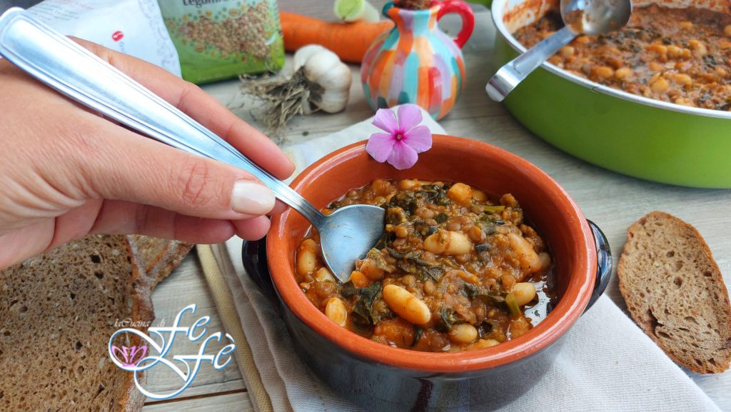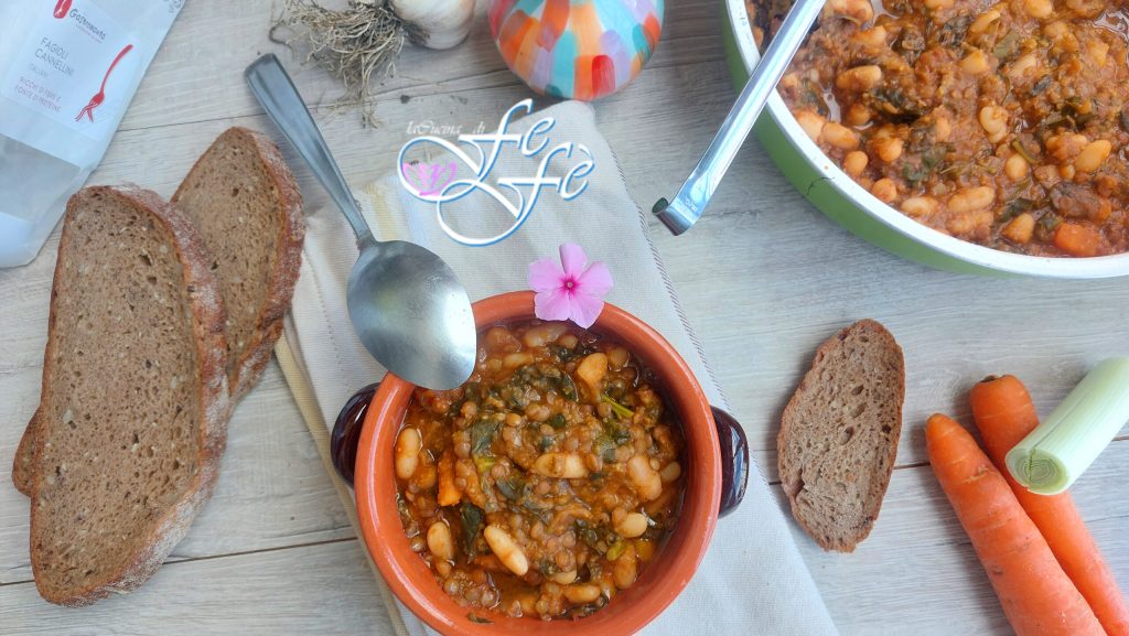 Quentes, acolhedoras e simples de preparar, as sopas são um prato perfeito para saborear vegetais, cereais e leguminosas e fazer um carregamento de proteínas vegetais, vitaminas e sais minerais! É certamente uma das melhores maneiras para o nosso organismo enfrentar as mudanças sazonais e a chegada das temperaturas mais frias, elevando também nossas defesas imunológicas! E aqui está minha proposta de hoje, uma das sopas mais deliciosas que já preparei, feita com feijão cannellini, lentilhas e couve negra! Deliciosamente encorpada, densa e rica em propriedades antioxidantes, impossível não amar! Sabemos bem quanto os couves, em geral, possuem essas incríveis virtudes, mas talvez você não saiba que a couve negra é considerada o super alimento por excelência, que reúne em si doses significativas de flavonoides, fibras e outras moléculas vegetais aliadas à nossa saúde! Além disso, é deliciosa, perfeita para consumir no almoço ou no jantar, acompanhada de croutons de pão torrado e um fio de azeite a cru, quando está chovendo lá fora! Extremamente gratificante! Vai aquecer sua alma e corpo e será muito apreciada por toda a família!