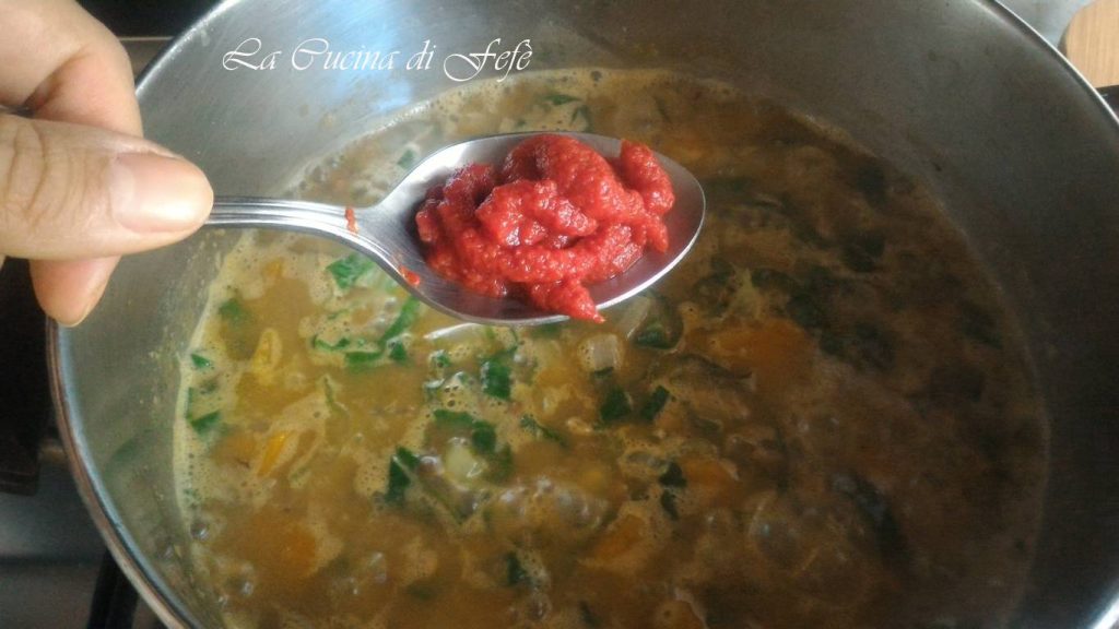 • Complete adicionando também as acelgas e cozinhe por cerca de 30′, regando com o caldo restante se a sopa secar demais