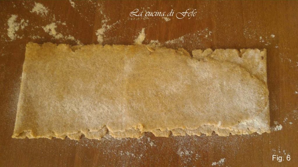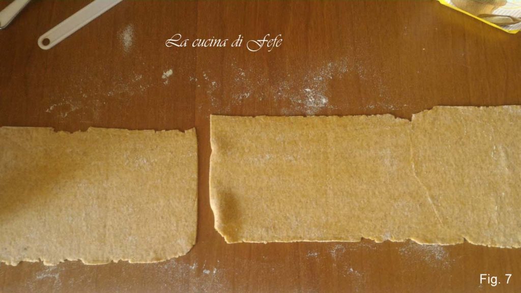 Dobre sobre ela mesma até obter gradualmente uma folha cada vez mais fina, lisa e longa, que recomendo cortar por praticidade (fig. 7).