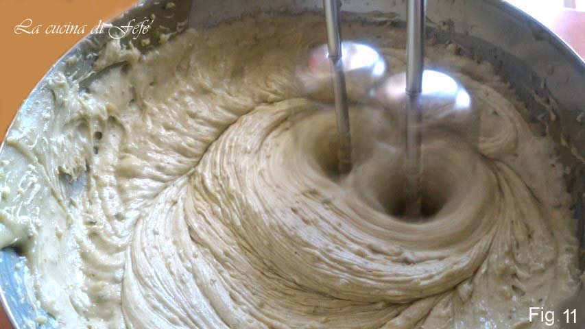 Adicione a farinha de pistache, então misture tudo com uma espátula até obter um creme liso e homogêneo (fig. 10).
