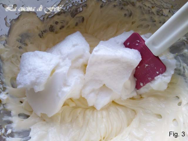 • Bata as claras em neve firme com uma pitada de sal. Incorpore-as ao creme de mascarpone com a ajuda de uma espátula através de movimentos lentos de baixo para cima para não desmontar o creme.