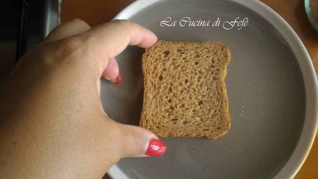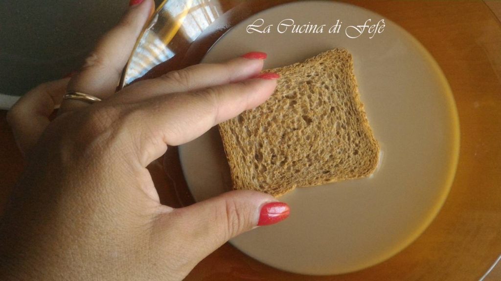 Coloque outra torrada por cima amolecida previamente no leite vegetal e bem escorrida.