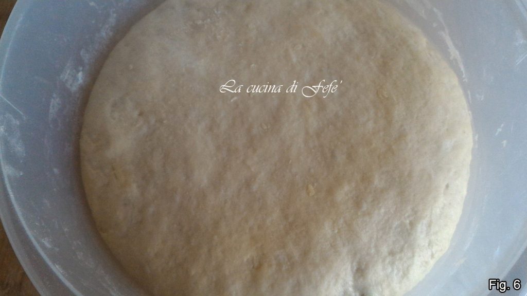 Deixe crescer coberto com um pano de prato ou filme plástico em um local aquecido, por exemplo, em forno desligado com luz acesa, por cerca de 2 h ou até dobrar de volume (fig. 6).
