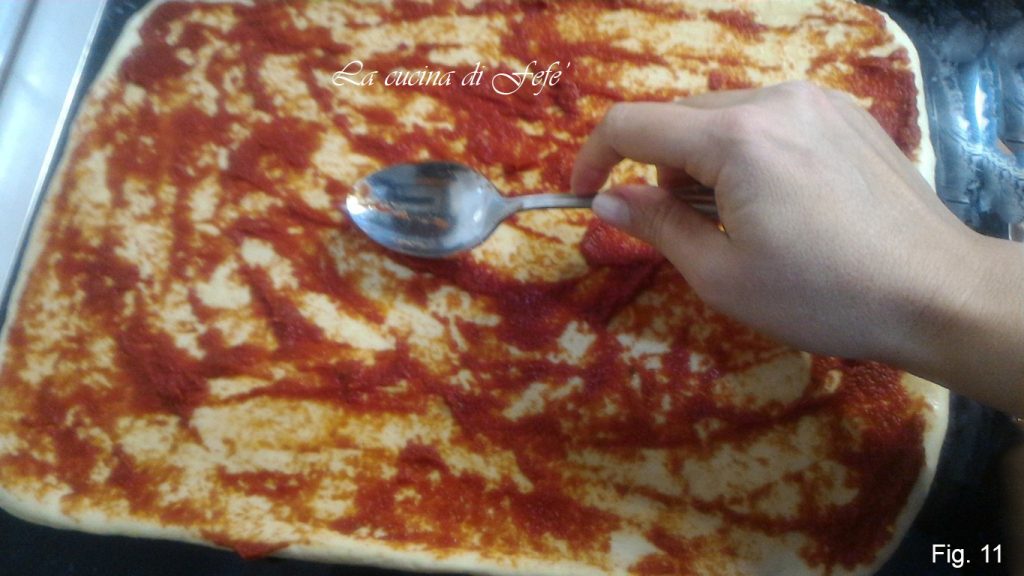 Misture o extrato com o molho de tomate e distribua por toda a superfície da primeira folha com a ajuda de uma colher (fig. 11).