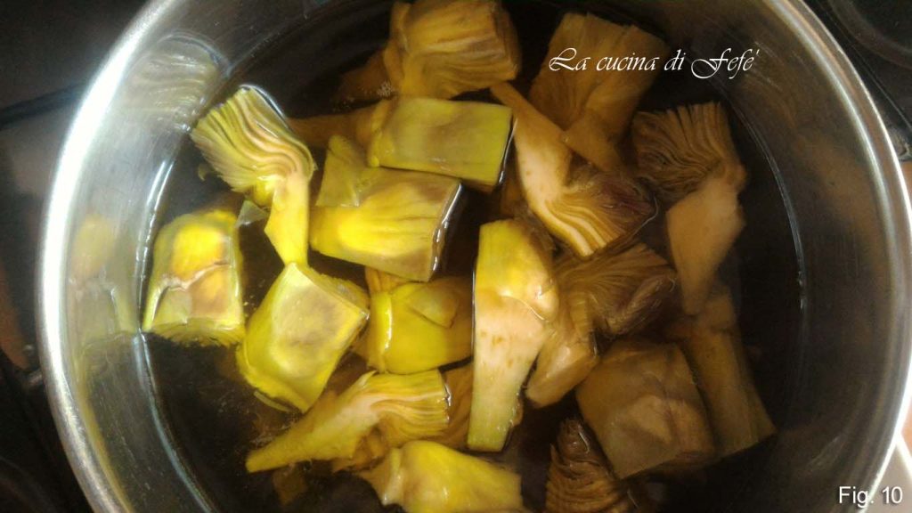 Uma vez limpas todas as alcachofras, escalde-as por cerca de 8 minutos em água levemente salgada (fig. 10).