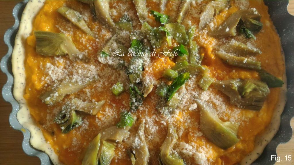 E voilà… sua torta salgada com creme de abóbora e alcachofras escaldadas está pronta para ser saboreada!