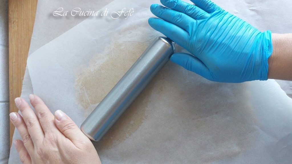 • Abra a massa em uma espessura de 3-4 mm entre duas folhas de papel manteiga.