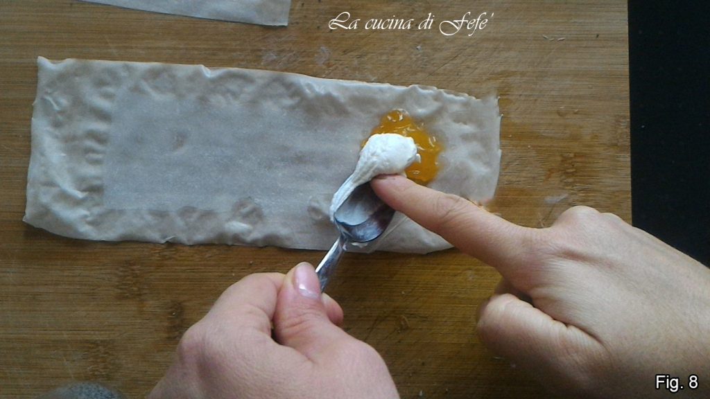 Agora repita a operação com outra massa, substituindo o creme de amêndoas pela compota de tangerina (fig. 7).