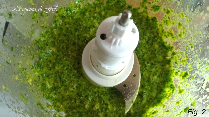 • Bata até obter um pesto bastante fluido, adicionando, se necessário, algumas colheres de água de cozimento da massa (fig. 2).