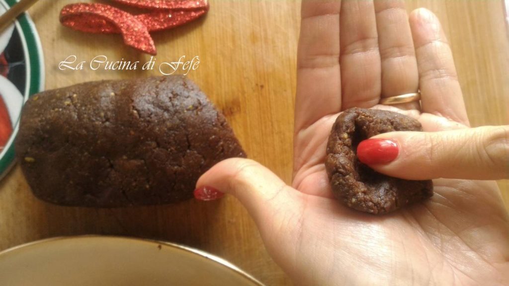 Separe pequenas porções de 20-25 gr. aproximadamente, achate-as com as mãos e coloque um pistache inteiro no centro.