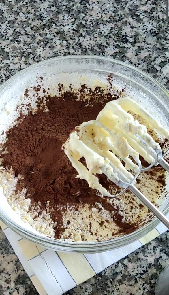 PARA UMA FORMA DE 24-26 CM DE DIÂMETRO: 3 ovos, 160 g de açúcar, 280 g de ricota, 60 g de cacau em pó, 260 g de farinha, um pacotinho de fermento para bolos