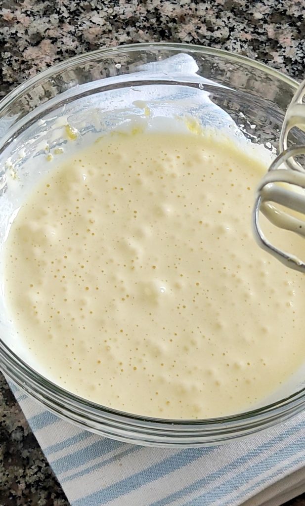 Bata os 2 ovos inteiros com o açúcar usando uma batedeira elétrica por 7-8 minutos até obter um composto claro e espumoso.