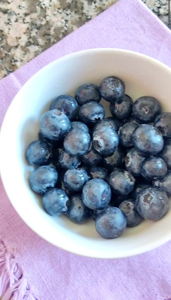 Por último, adicione os mirtilos à massa e misture delicadamente com uma espátula para incorporá-los.
