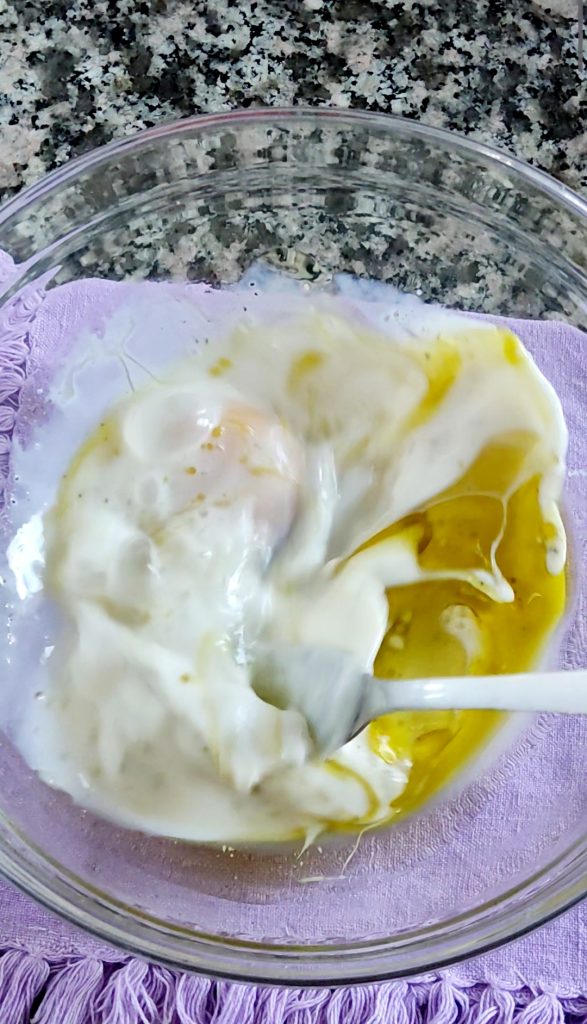 Junte o azeite extra-virgem e misture.