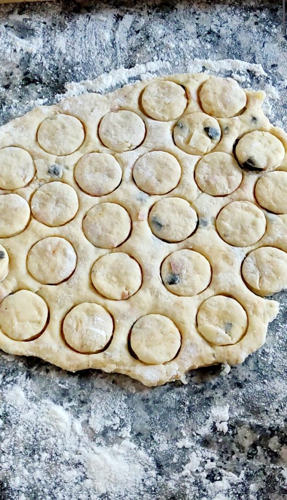 Abra a massa na superfície levemente enfarinhada até 0,4-0,5 cm de espessura. Com uma pequena forma redonda corte muitos discos pequenos. Você também pode usar a tampa plástica de uma garrafa.