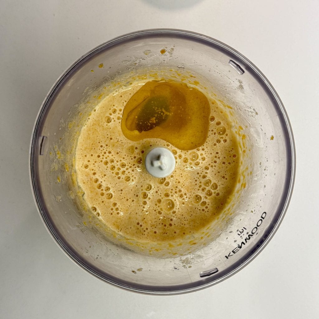 • Bata novamente para misturar o óleo com o restante dos ingredientes.