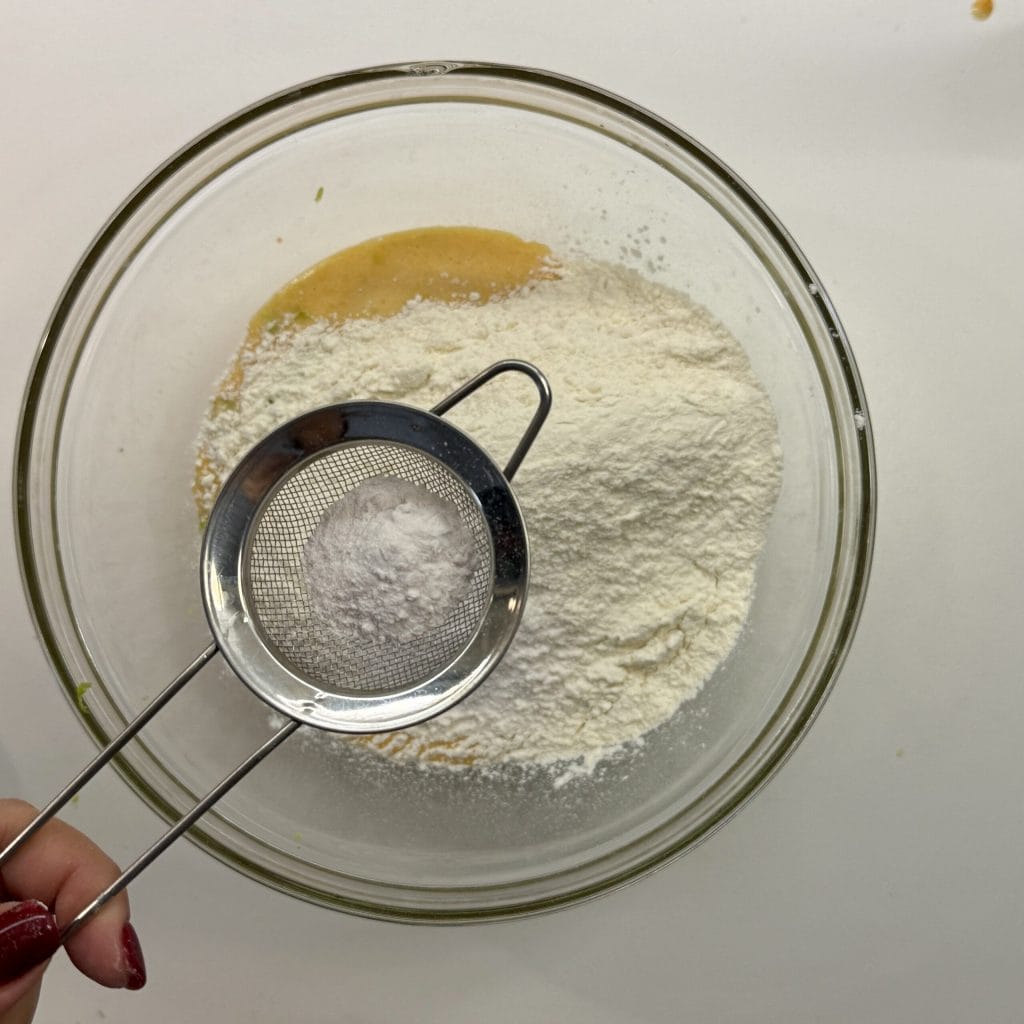 Por fim, adicione a farinha e o fermento peneirado: 30 seg. vel 5.