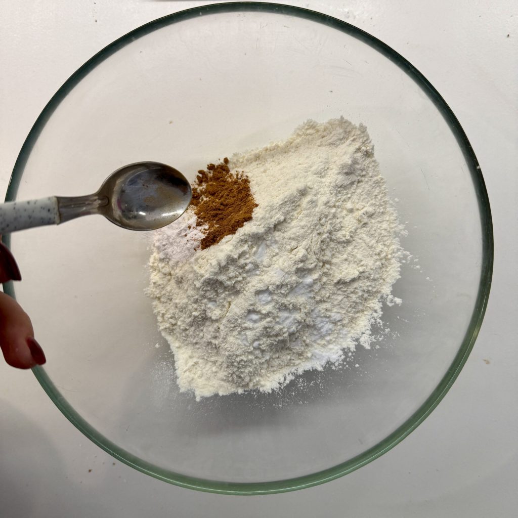 Adicione também meia colher de chá de canela. Misture com uma espátula.