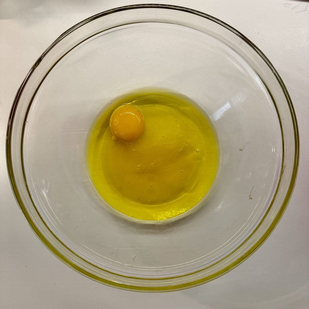 • e o óleo. Misture energicamente com um batedor manual para emulsionar os ingredientes.