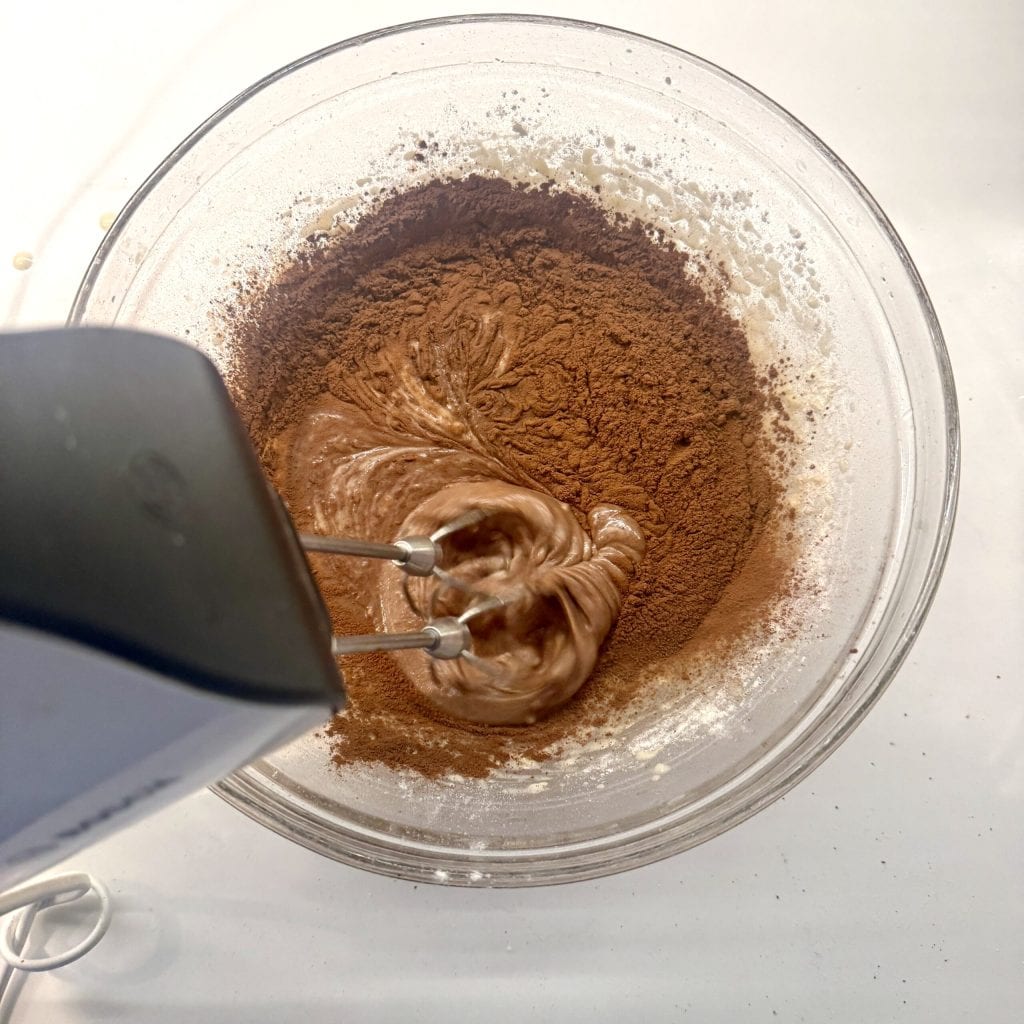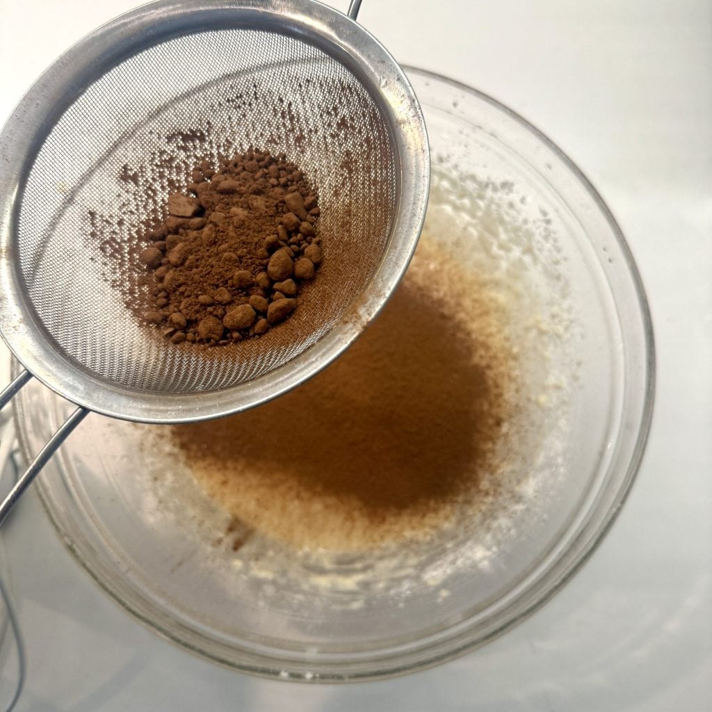 Adicione a farinha, o cacau, o fermento, uma pitada de sal: 30 seg. vel 4.