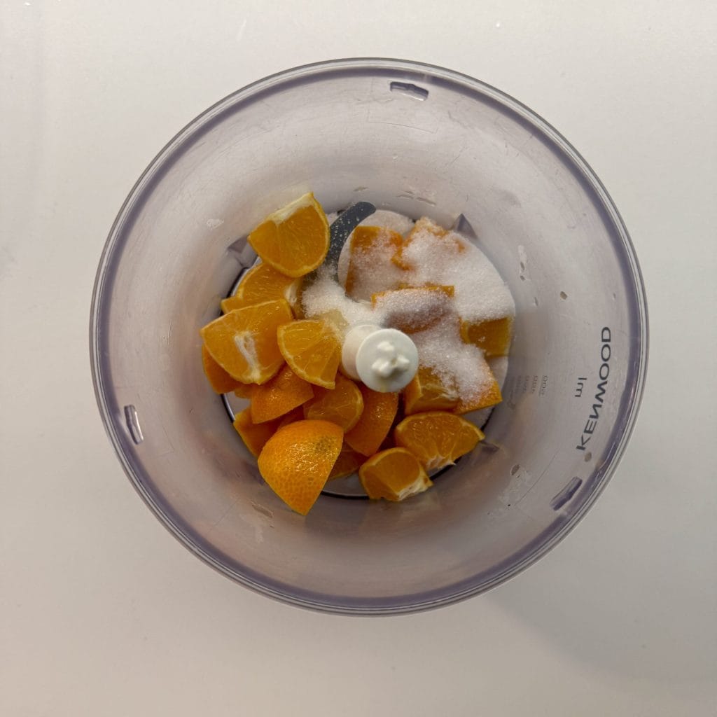 – Recomendo usar tangerinas orgânicas e de casca fina. Se você não as tiver ou tiver tangerinas com casca grossa, rale a casca, depois retire-a e bata apenas a fruta.