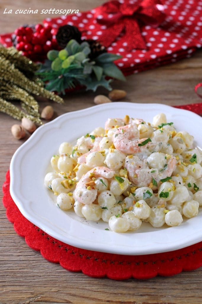 Os nhoques com camarões, creme de leite e granulado de pistache são um prato principal festivo realmente simples e muito saboroso, que você pode incluir nos seus menus à base de peixe e que pode acompanhar, por exemplo, outros pratos com salmão ou entradas de peixe típicas de grandes ocasiões e das festividades natalinas.