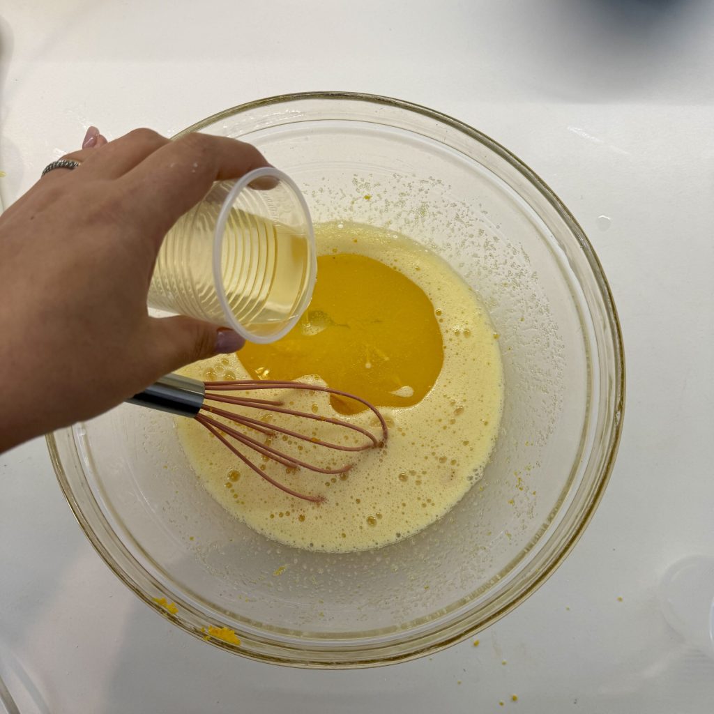 Adicione o copo de óleo e misture.