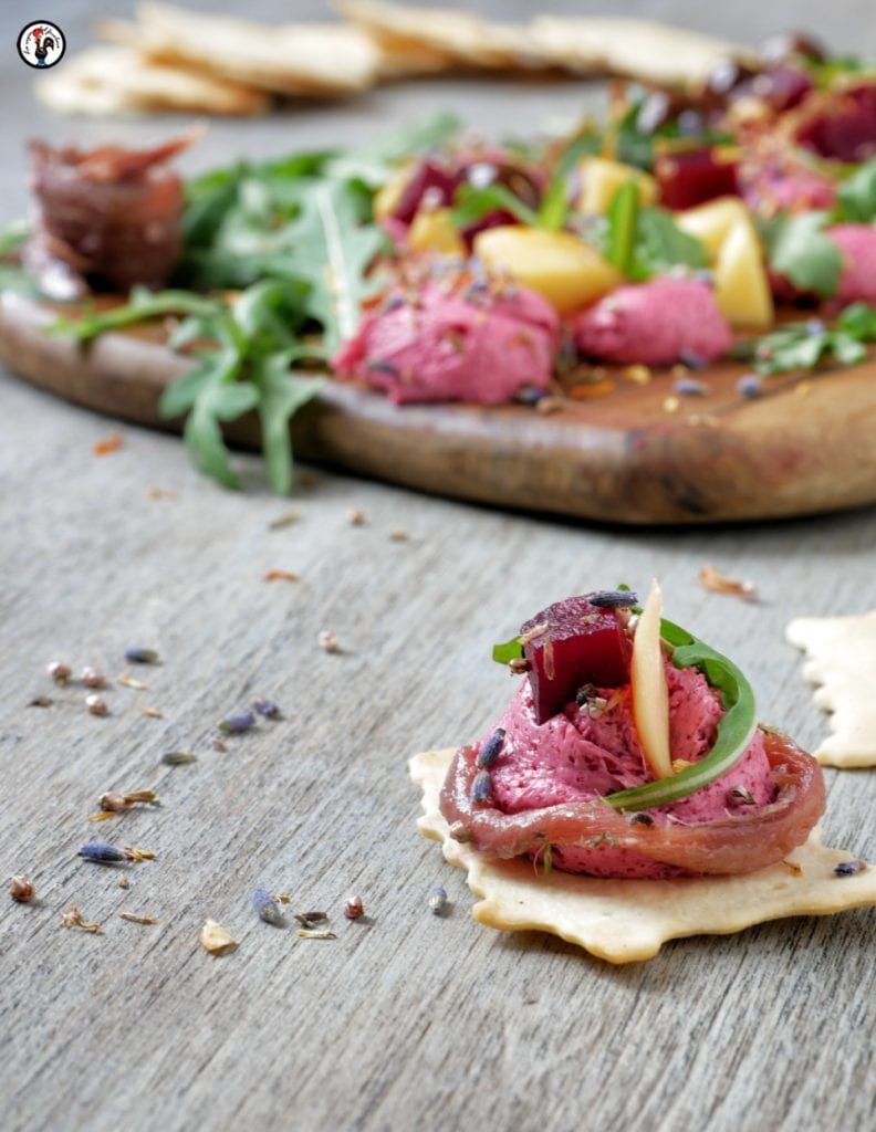 ⁕ Sanduíche rosa de beterraba – Com agretti e flores comestíveis