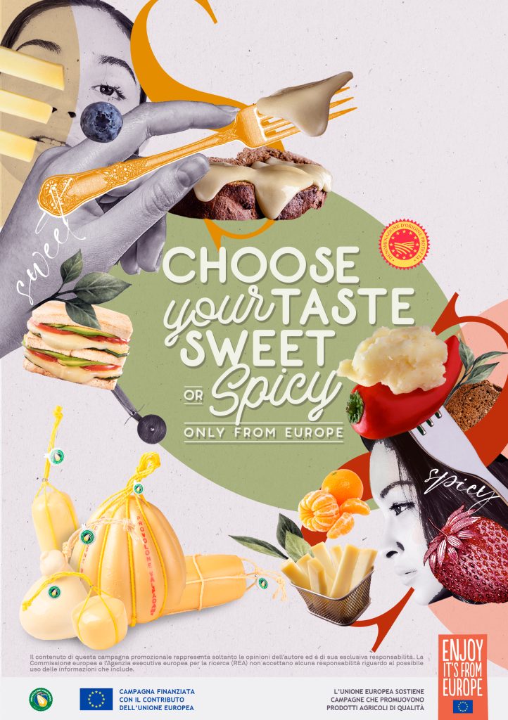 • Choose your taste, sweet or spicy, only from Europe é um belo projeto promovido pelo Consórcio de Proteção do Provolone Valpadana e cofinanciado pela Comissão Europeia. Nasce para permitir a todos reconhecer este queijo e aprender a comprá-lo e consumi-lo cada vez melhor, de forma mais consciente. Nos ajuda, enfim, a compreender o que é um produto com marca europeia de qualidade. O Provolone Valpadana, testemunha do projeto, encerra em si muito, em termos de valores, empenho, trabalho e excelência. Tudo isso, enfim, é a marca DOP: três simples letrinhas que representam uma história e um mundo.