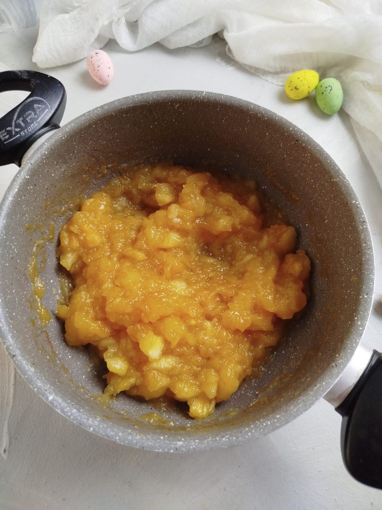 Para preparar este delicioso Mazurek de maçãs, comece pelo recheio de maçãs, que deverá esfriar antes de ser utilizado.