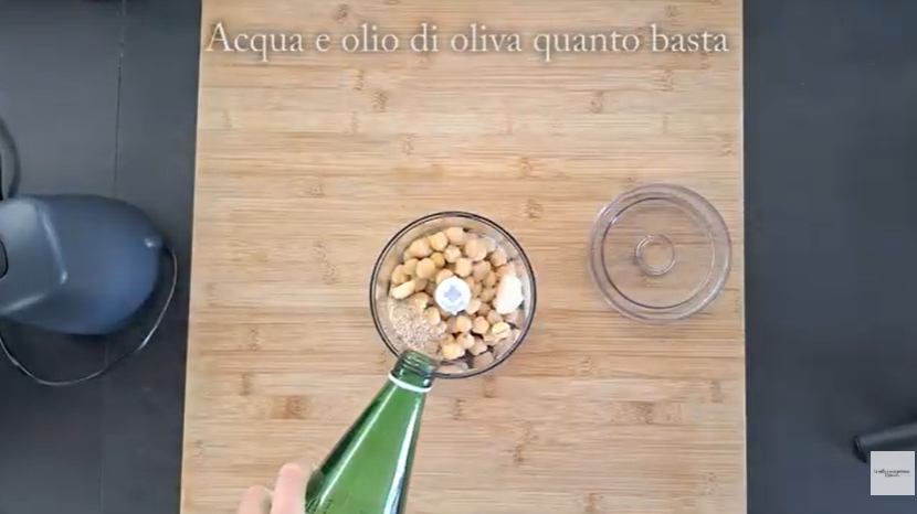 Adicione água fria uma colher de sopa de cada vez ou um fio de azeite. Bata novamente por 30 segundos para obter um creme liso. Se quiser, pode usar um pouco de água de cozimento do grão-de-bico.