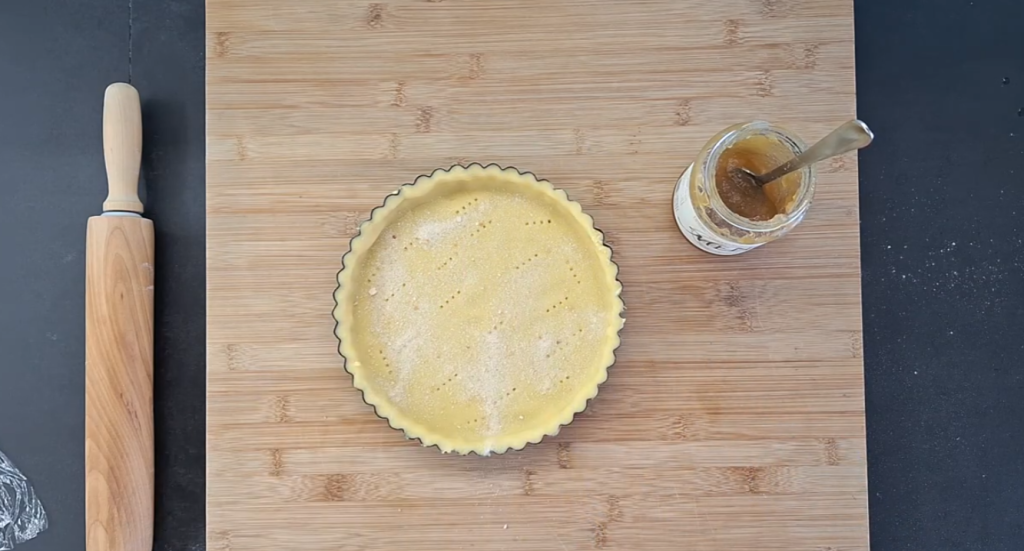 Eu a assei na fritadeira sem óleo usando uma forma de 20 cm, assim consegui uma massa quebradiça e uma base bem seca, sem precisar ligar o forno grande.